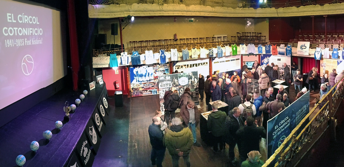 Aquest febrer he tingut l’oportunitat de transformar per primera vegada, i en temps rècord, la sala teatre d’El Círcol de Badalona en una sala d’exposicions, amb la mostra “El Círcol Cotonificio, 1941-2023 Fent història!”. Una iniciativa amb la qual l’entitat s’ha sumat als actes organitzats al voltant de la celebració de la Copa del Rei de Bàsquet a Badalona el cap de setmana del 18 i 19 de febrer de 2023, fent de l’afició i la pràctica d’aquest esport el protagonista a molts indrets de la ciutat, reivindicant de nou ser bressol del bàsquet.