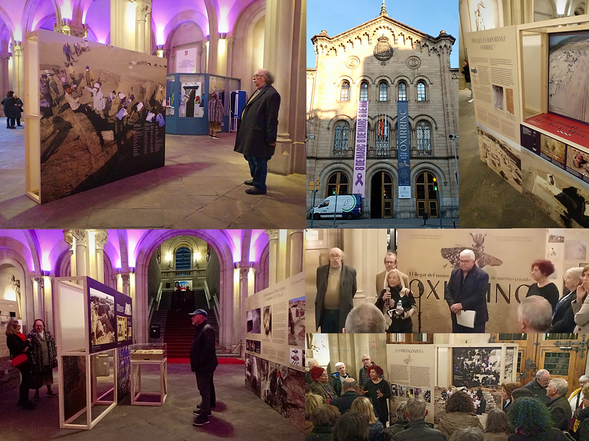 Aspecte de l’exposició i acte d’inauguració el passat 7 de març de 2023, amb les Doctores Maite Mascort i Núria Castellano, on també van intervenir el Dr. Josep Padró, qui va ser el primer director de l’excavacions a Oxirrinc l’any 1992, el Vicerector de Patrimoni i Activitats Culturals Dr. Agustí Alcoberro, i el catedràtic Ignasi Xavier Adiego director de l’Institut del Pròxim Orient Antic de la UB. Posteriorment les comissàries van oferir una visita guiada als assistents.